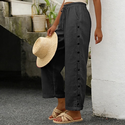 Per donna Cotone Pantaloni Pantaloni Estivi Pantaloni da Spiaggia Vacanza Moda Casual Quotidiano Lunghezza alla caviglia Vita Alta Semplice Coulisse Bottone laterale Traspirabilità Leggero