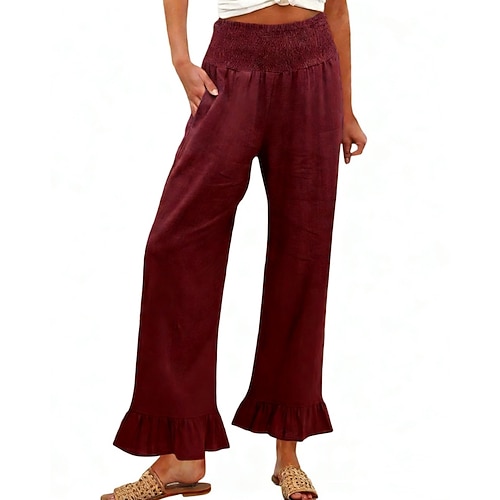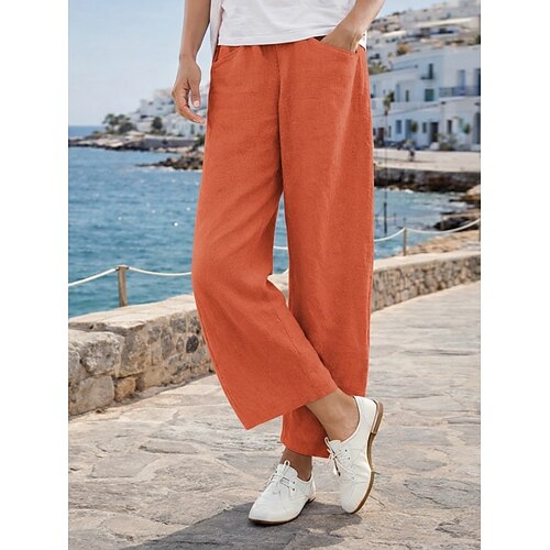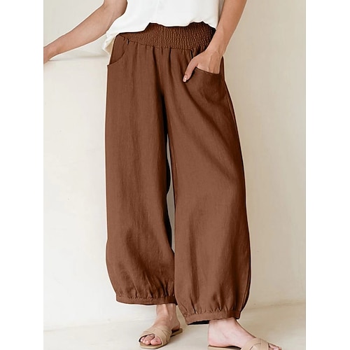 Per donna Pantaloni in cotone e lino Pantaloni Pantaloni Estivi Pantaloni Larghi Vacanza Essenziale Lunghezza al polpaccio Vita Alta Semplice Coulisse Tasca Fascia Elastica Comodità Morbido