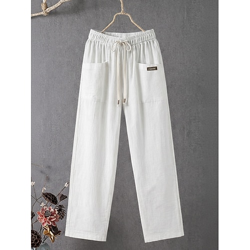 Per donna Finto cotone e lino Pantaloni Affusolati Pantaloni Palazzo Moda Streetwear Comfort Lunghezza intera Vita Alta Semplice Tasca Elastico in vita Gamba Dritta Comodo All'aperto Confortevole