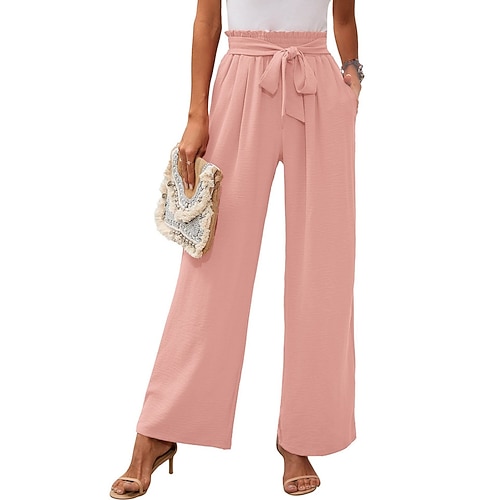 Per donna Pantaloni Pantaloni Estivi Pantaloni Larghi Vacanza Moda Essenziale Lunghezza intera Vita Alta Coulisse Elastico in vita Gamba larga Comodità Leggero Morbido Inelastico Spiaggia Streetwear