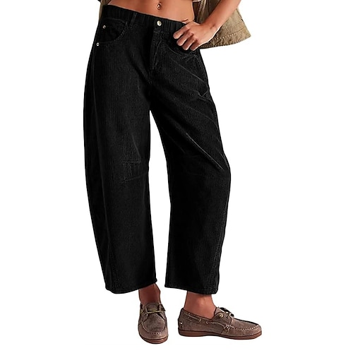 Per donna Pantaloni in velluto a coste Pantaloni Eleganti Dritto Streetwear Casual Lunghezza intera Naturale Semplice Rivetto Cerniera Confortevole Streetwear Ferie Abbigliamento quotidiano Nero Rosa