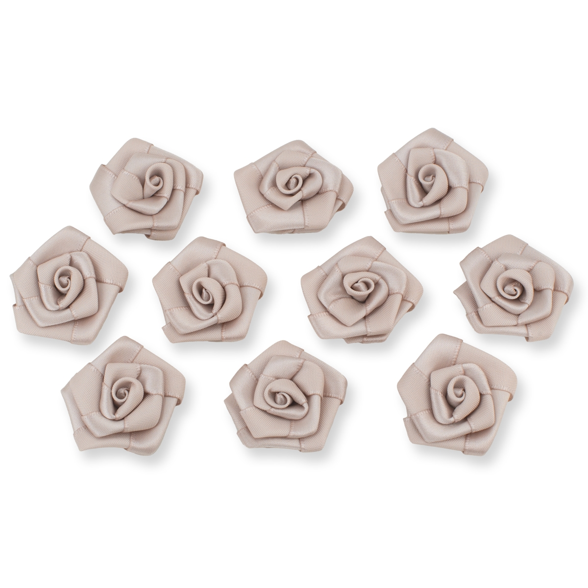 Creativery Satinrosen 3cm 10 Stück Stoffblumen zum Basteln Dekorieren Hochzeit Geschenkverpackung Blütendeko Tischdeko Handarbeit Stoffrosen Deko Blumen Taupe