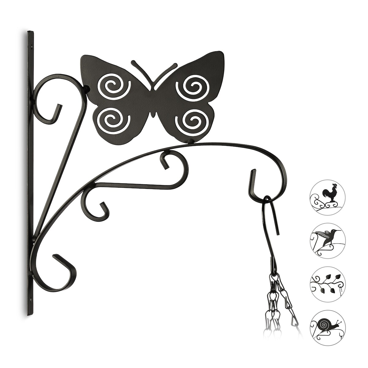Relaxdays Blumenhaken mit Schmetterling, Blumenampelhalter für Wand, Metall Garten-Deko, HxBxT: 30 x 27,5 x 2cm, schwarz