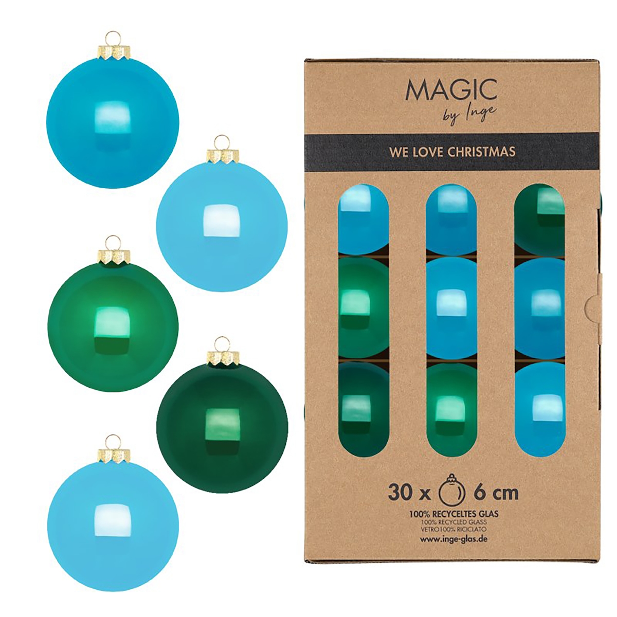 30 Weihnachtskugeln Glas 6cm matt & glänzend Christbaumkugeln Weihnachtsbaumkugeln Weihnachten Christbaumschmuck Weihnachtsbaumschmuck Grün Blau Mix