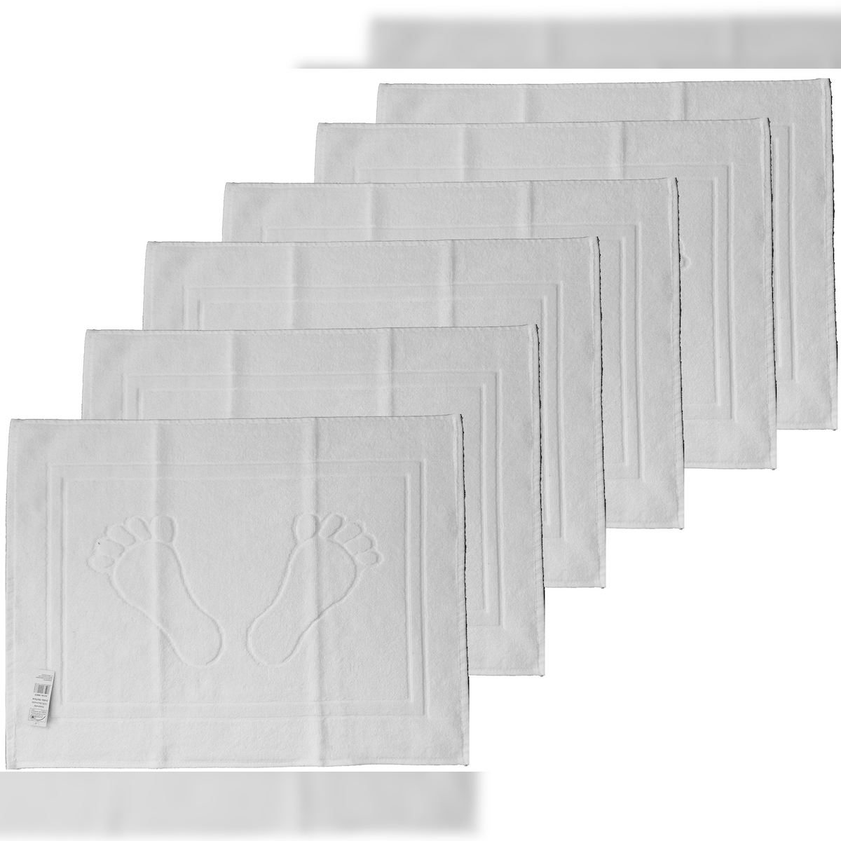 6er Pg. Frottier Duschvorleger, Badematte, Frottee, 50 x 70 cm, weiss, Füße, uni einfarbig, Badvorleger, 100% Baumwolle