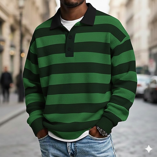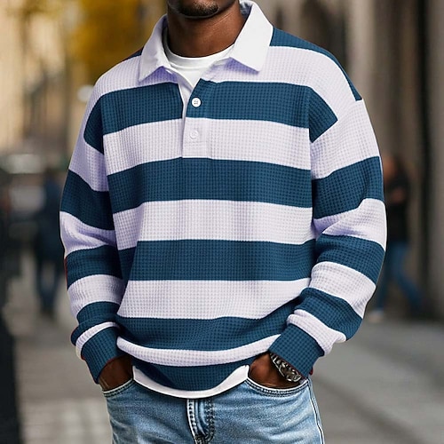 Per uomo Strisce orizzontali Magliette Polo a Nido d'Ape Polo da rugby Manica Lunga Magliette polo Camicie con Colletto Casual Athleisure Abbigliamento quotidiano Bottoni Primavera Autunno Inverno