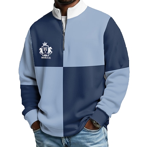Per uomo Blocco di colori Polo con zip Manica Lunga Magliette polo Colletto alla coreana Casual Scuola Athleisure Ferie Abbigliamento quotidiano Stampa 3D Polo con cerniera a un quarto Primavera