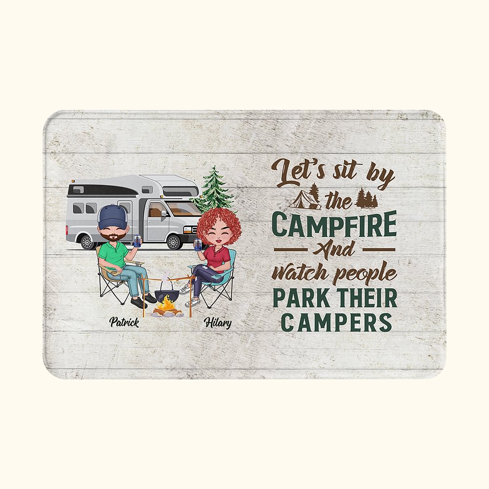 Gepersonaliseerde Laten we bij het kampvuur zitten en kijken hoe mensen hun campers parkeren Deurmat Cadeau voor echtpaar