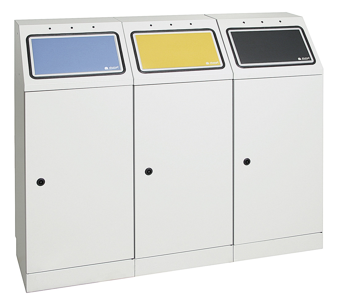 Abfalltrennung FD 45, 3-fach Station. Behälter zur Wandbefestigung, RAL 7035/ProPads, verz. Innenbehälter, 3x45 Liter