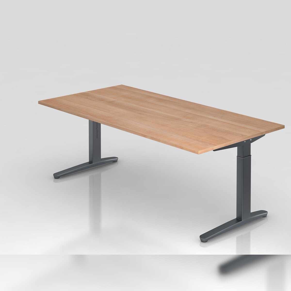 PROREGAL Schreibtisch Mika | Nussbaum | Graues Gestell | BxT 200x100cm | Arbeitshöhe 65-85cm | höhenjustierbar, 1cm Raster | C-Fuß-Gestell