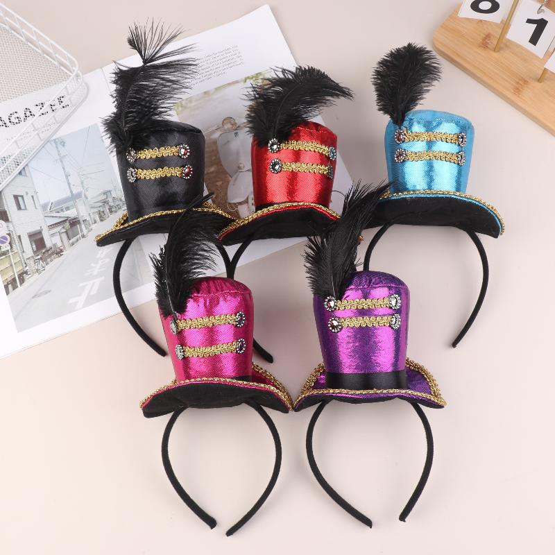 Mini Top Hat Feather Cap Headband Circus Ringmaster Hair Hoop Cosplay Costume Hair Hoops Kids Adults Hair Accessories red