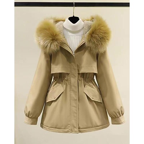 Per donna Cappotto Invernale Parka Caldo Confortevole Bordo in pelliccia Cerniera Tasca Casual Semplice Vacanza Abbigliamento quotidiano Uscire Weekend Lungo Con Cappuccio Vestibilità regolare Manica