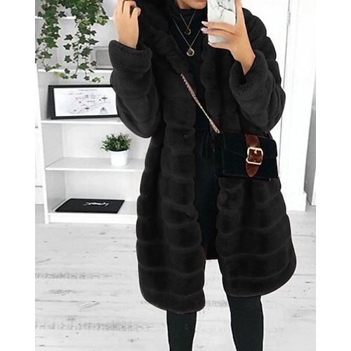 Per donna Cappotto Teddy Cappotto Cappotto in Pelliccia Sintetica Caldo Confortevole Tasca Attivo Casual Semplice Vacanza Abbigliamento quotidiano Weekend Lungo Con Cappuccio Vestibilità regolare
