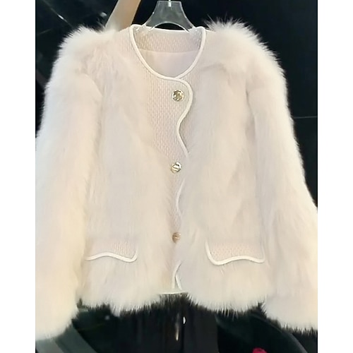 Per donna Cappotto Invernale Cappotto in Pelliccia Sintetica Caldo Confortevole Bottoni Strappati Casual Semplice Vacanza Abbigliamento quotidiano Uscire Weekend Regolare Scollo a V Vestibilit