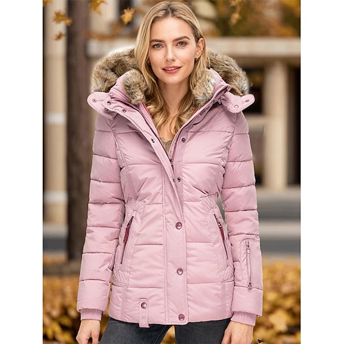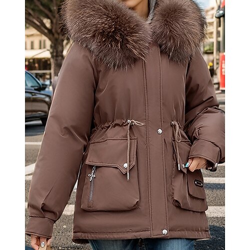 Per donna Cappotto Invernale Parka Caldo Confortevole Bordo in pelliccia Cerniera Tasca Casual Semplice All'aperto Vacanza Uscire Weekend Lungo Con Cappuccio Vestibilità regolare Manica Lunga