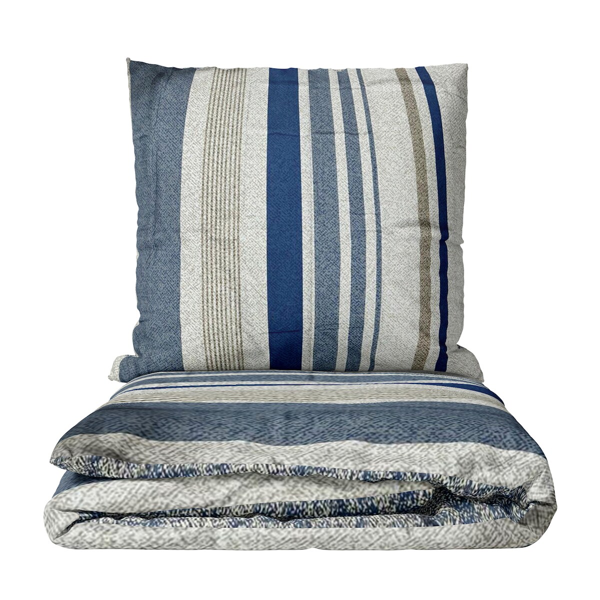 Leonado Vicenti Mikrofaser Bettwäsche-Set 135x200 cm 80x80 cm Blau Beige Grau Gestreift mit Reißverschluss 4tlg