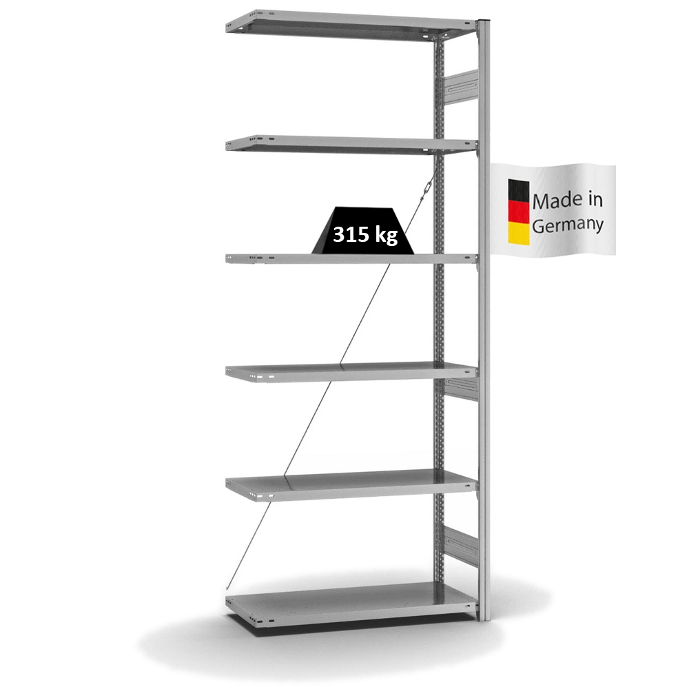 PROREGAL Fachbodenregal Stecksystem | Anbauregal | HxBxT 250x100x40cm | 6 Ebenen | Fachlast 315 kg | Einseitig nutzbar | Verzinkt