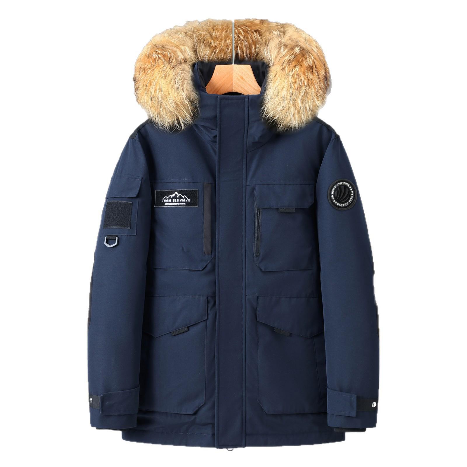 Winter Extreme Cold Outdoor Ski Thick Down Jacket Long Warm Cold-proof Goose Down Men and Women Couple Jacket Parka cm Dark blue