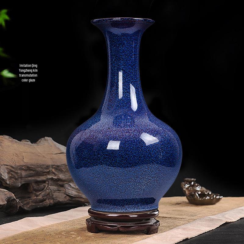 Large Blue Ceramic Vase for Floral Arrangements - New Chinese Ornament for Home and Living Room Decor
