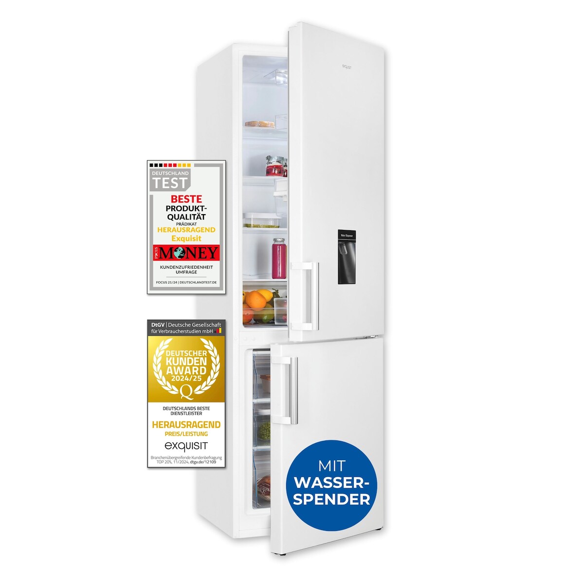 Exquisit Kühl-Gefrierkombination KGC5265-70-H-WS-010E weiss | Nutzinhalt: 268 L | Wasserspender | 4*-Gefrieren | Standgerät