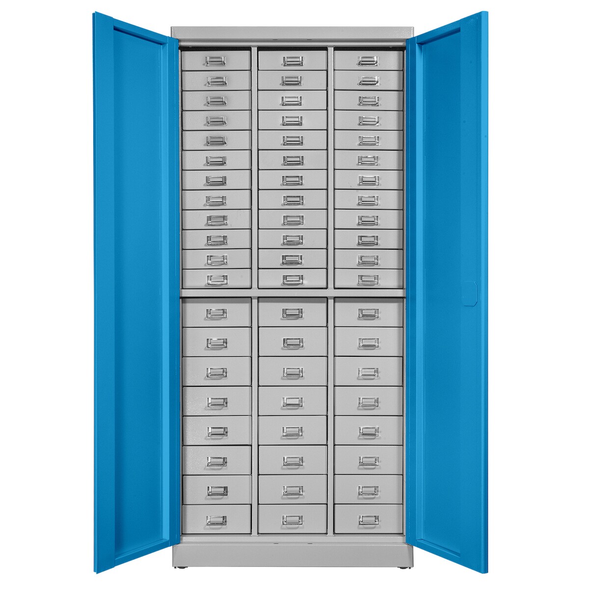 Proregal Schubladenschrank Chinchilla mit 60 Schubladen | HxBxT 179x80x41cm | Lichtgrau/Lichtblau