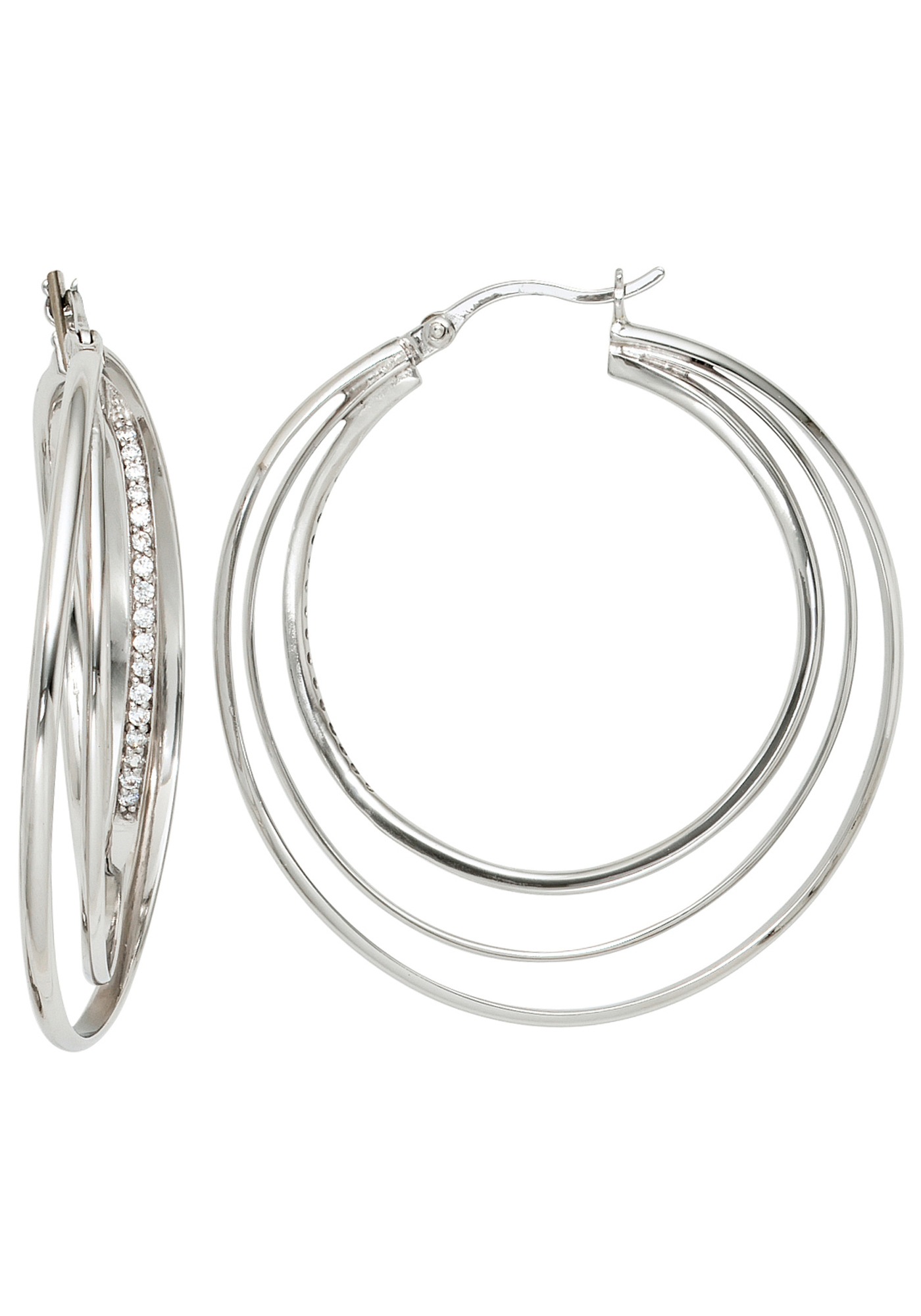 Paar Creolen JOBO, silber (silber 925), Ohrringe, Damen, Silber 925 (Sterlingsilber), 925 Silber mit Zirkonia