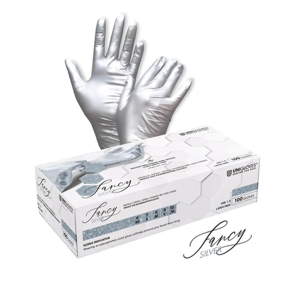 Unigloves Einweghandschuhe Fancy Silver Gr. S 100 Nitrilhandschuhe silber glänzend