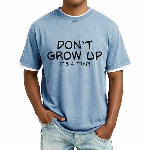Non crescere, è una trappola, maglietta da uomo in cotone lavato, vintage, effetto consumato, maglietta viola con scritta ringer, divertente, detto umoristico, abbigliamento, abbigliamento, s m l xl