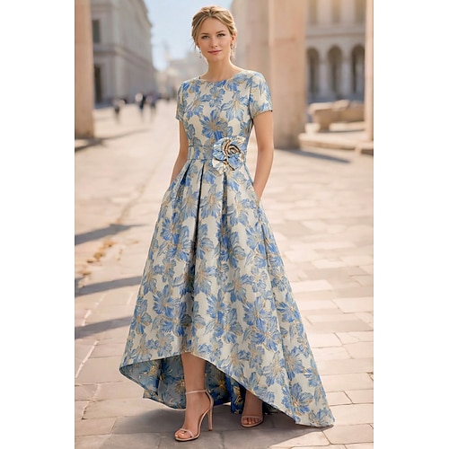 Linea ad A Asimmetrico Lunghezza alla caviglia Abiti da Cocktail Elegante Vintage Floreale Manica Corta Girocollo Festa in giardino Matrimonio Tasca Jacquard con Fiocco/Fiocchi Tasca