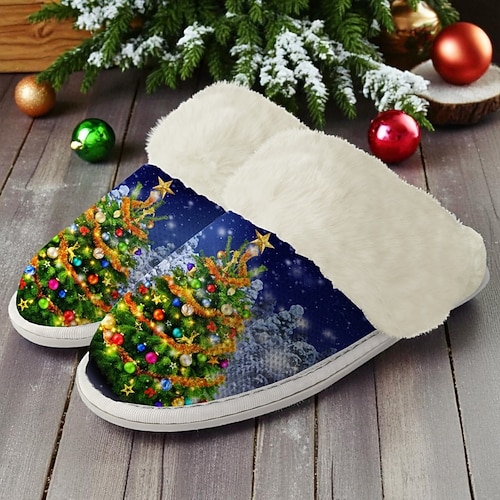 pantofole da donna dorate a forma di albero di Natale: elegante design ad albero dorato, morbida fodera in pelliccia per il massimo comfort, ideali per il relax durante le vacanze, la mattina di Natale e per fare regali in inverno