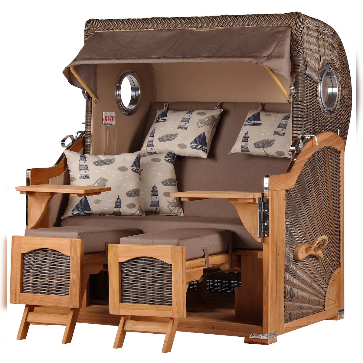 Mr. Deko Strandkorb Komplettset: Ammersee Grande XL Teak Bullauge - PE grau - Modell 540