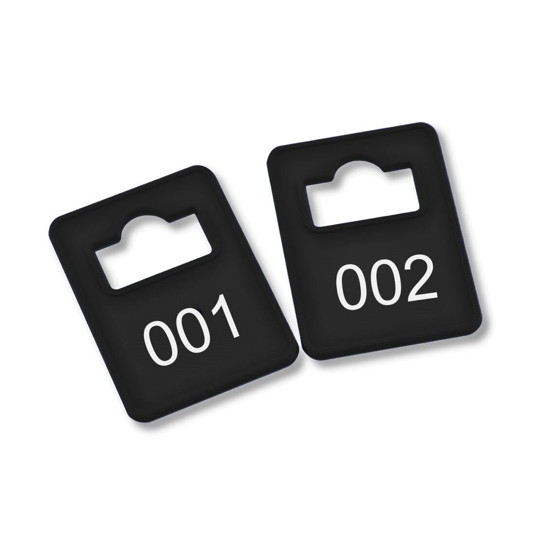 CombiCraft Garderobemarken 'Tiffany' Schwarz - 100 Stück - nummeriert von 1 bis 100 - aus Kunststoff - 36,3 x 50,5 mm mit Aufhängeloch
