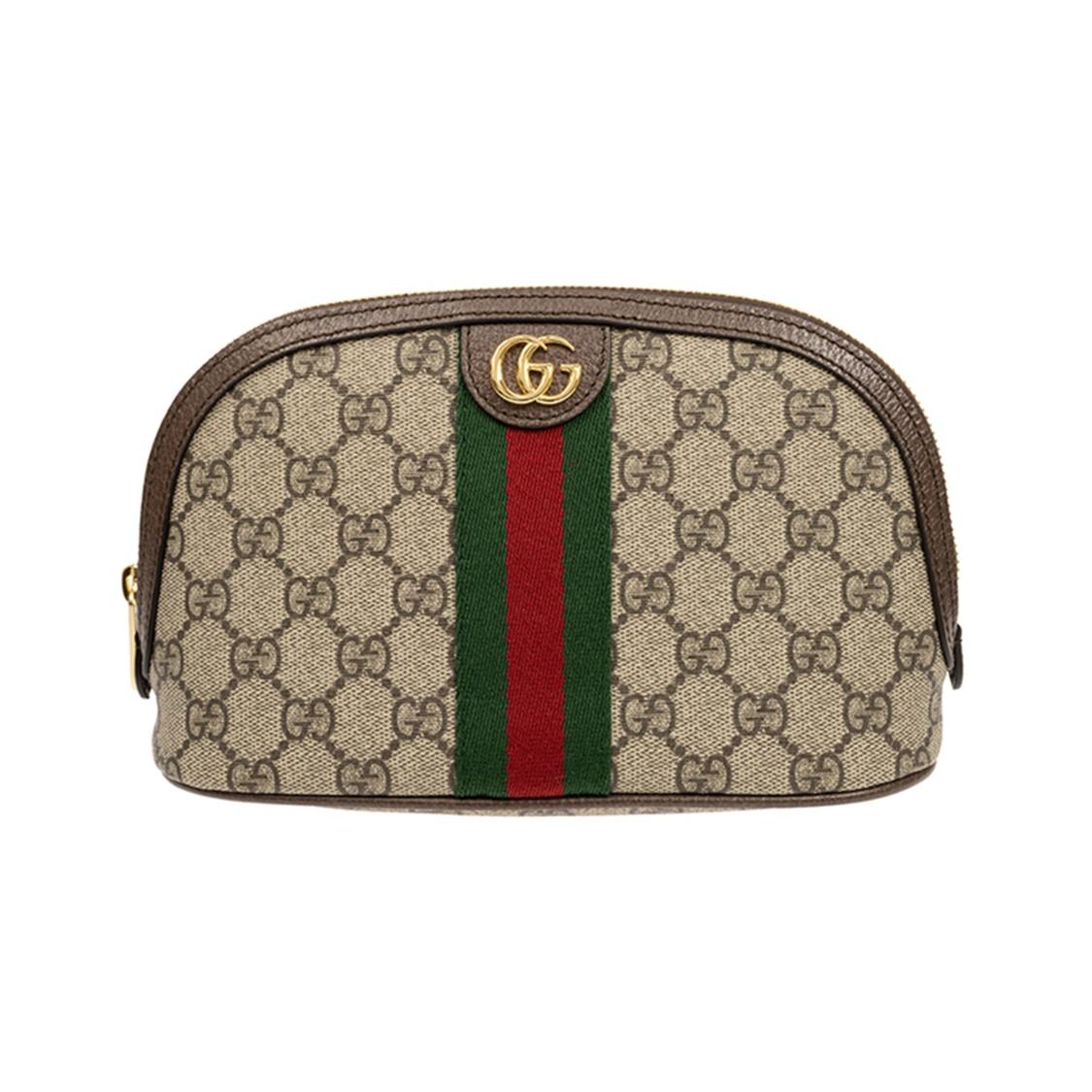 GUCCI Ophidia vieux logo fleur bande tissée toile patch cuir sac à main trousse de toilette trousse de maquillage grand modèle femme noir bois/marron