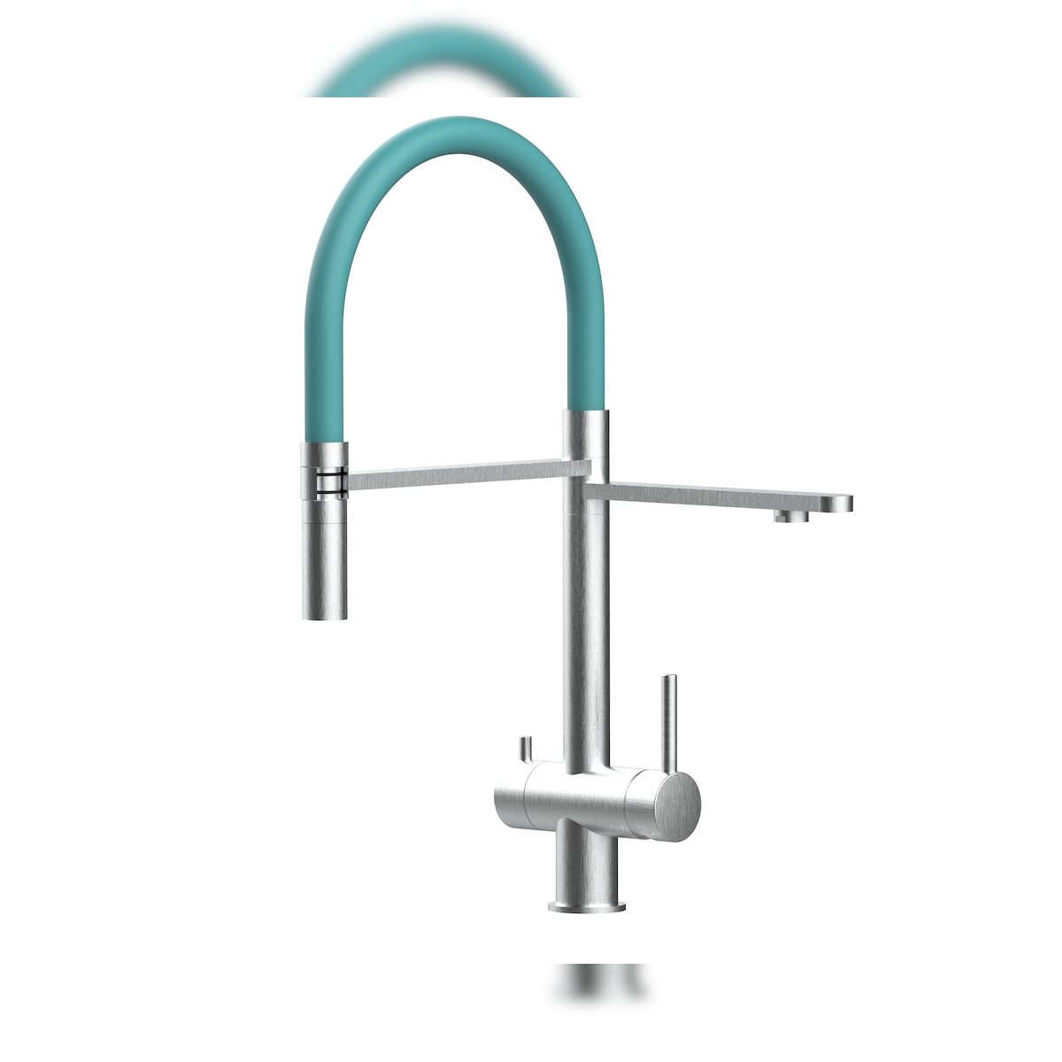Vizio 3 Wege Wasserhahn Küchenarmatur Spültischmischer, Edelstahl Massiv, 360° schwenkbarem Türkis Auslauf, abnehmbare 2 strahl Handbrause, Gebürstet
