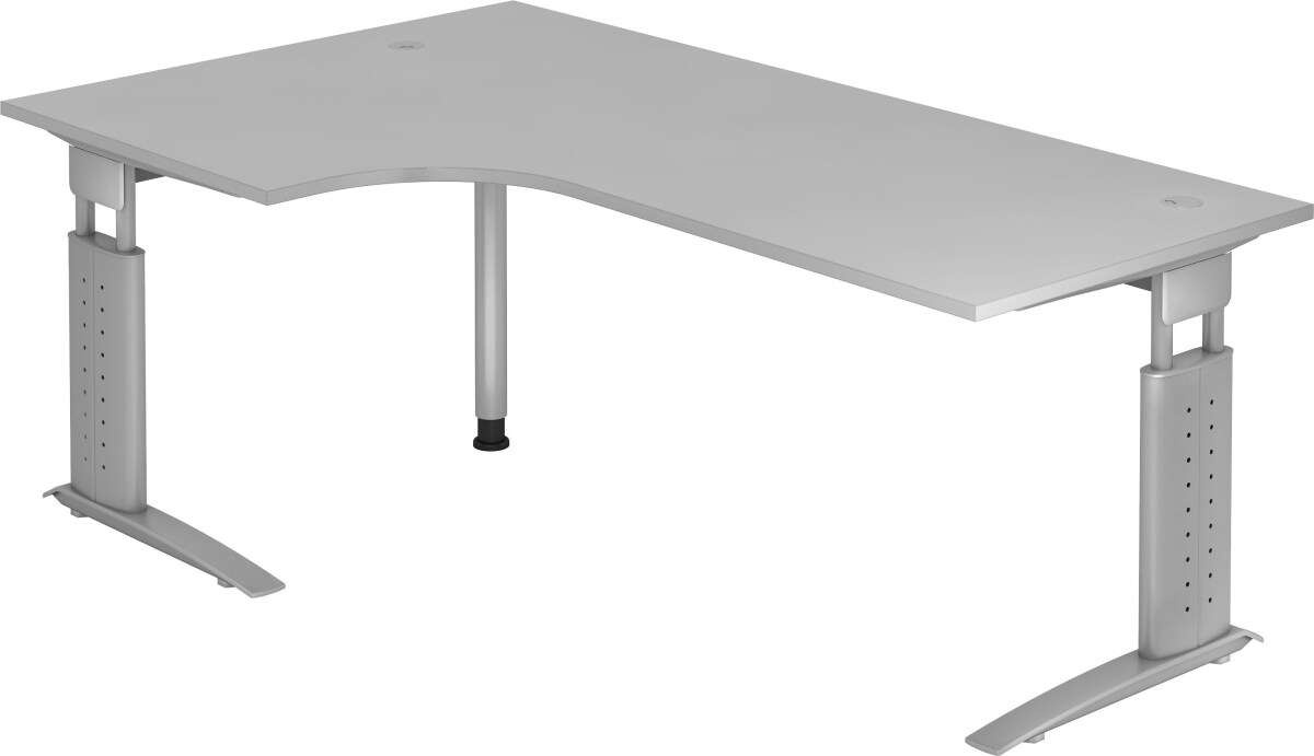 Hammerbacher Winkeltisch C-Fuß 200x120cm 90 Grad Grau/Silber