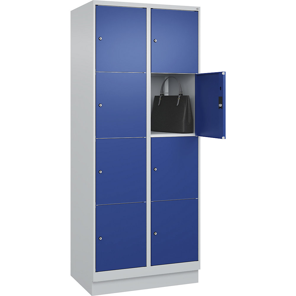 Schwarz-Weiß-Spind Classic PLUS Sitzbank, 1 Abteil, lichtgrau / lichtblau, B 800 mm, Zylinderschloss, auskragend, Kunststoff C+P