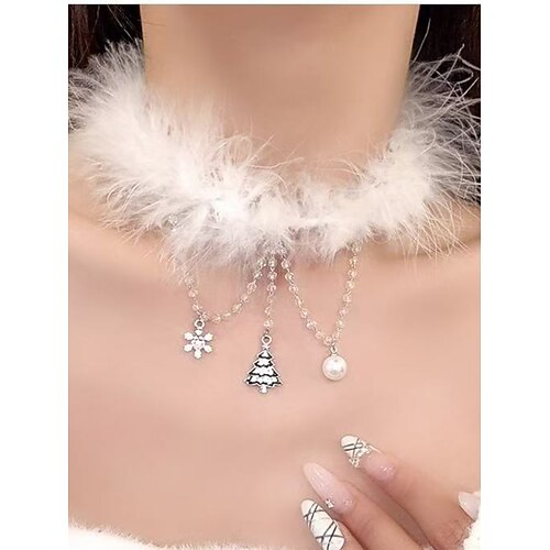 Collana girocollo natalizia da donna con fiocco in velluto, pelliccia sintetica e campanellino dorato, accessorio da collo festivo per feste di Natale e celebrazioni invernali