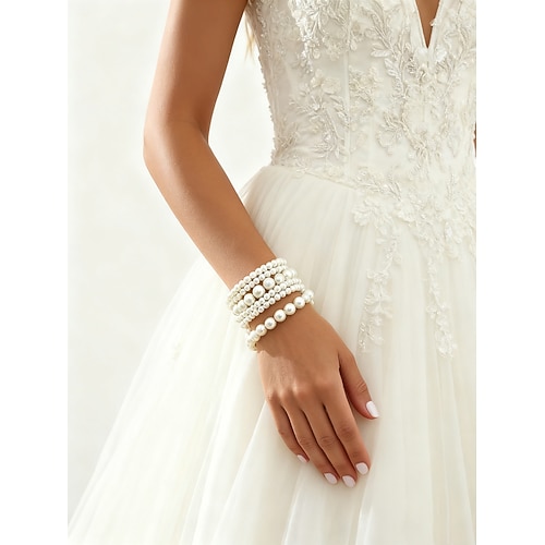 elegante bracciale da sposa multistrato con perle da donna - accessorio da sposa con perline finte per spose e damigelleamp;occasioni formali