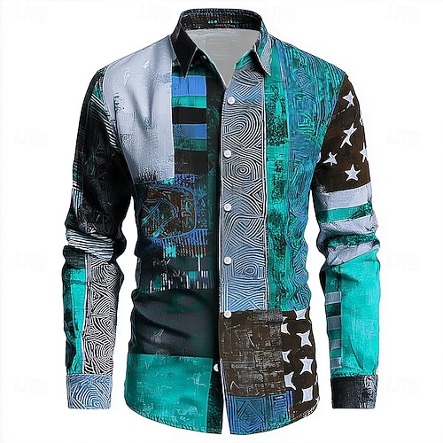 Per uomo Geometrico Blocco di colori Patchwork Camicia Camicia con Bottoni Manica Lunga Vintage Retrò All'aperto Quotidiano Abbigliamento casual alla moda Primavera Autunno Collo ripiegato Stampa 3D