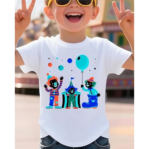 Cotone Carnevale Bambini Ragazzi Nero Bianco Rosso Grafico Burlone Maglietta Blusa Girocollo Manica Corta All'aperto Abbigliamento Quotidiano Moda Streetwear Designer Stampa Estate