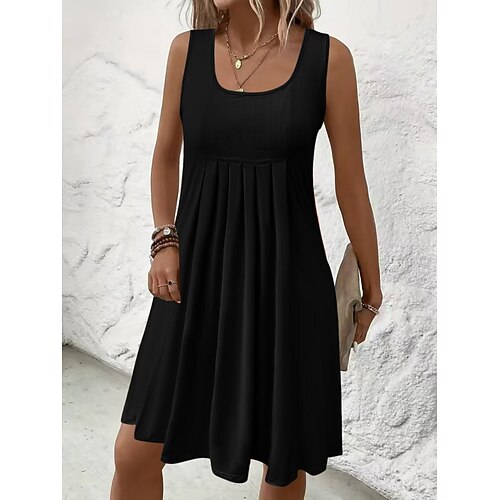 Per donna Mini Abito Abito Estivo Casual Quotidiano Vestibilità comoda Semplice Senza Maniche Collo a U Nero Blu reale Viola Verde Estate