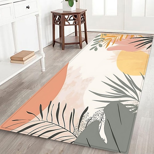 Tappeto da corridoio antiscivolo con motivo a foglie e fiori, in tessuto di flanella stampato, per ingresso, bagno e decorazione della casa