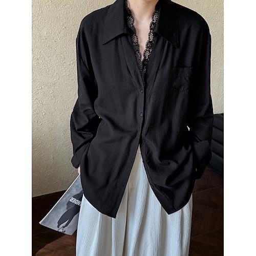Camicia casual elegante da uomo per il ritorno a casa vestibilità standard maniche lunghe colletto in un colore solido poliestere nero bianco rosa 2025