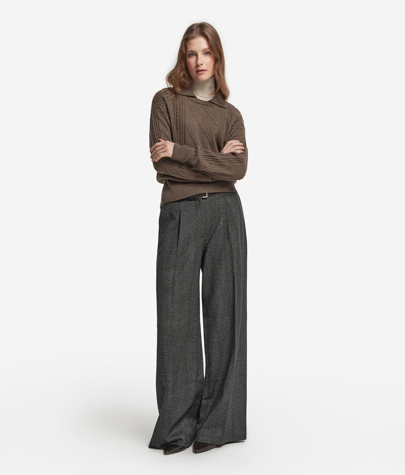 Falconeri Maglia con colletto in Cashmere Ultrasoft Donna Tortora Melange Taglia XS