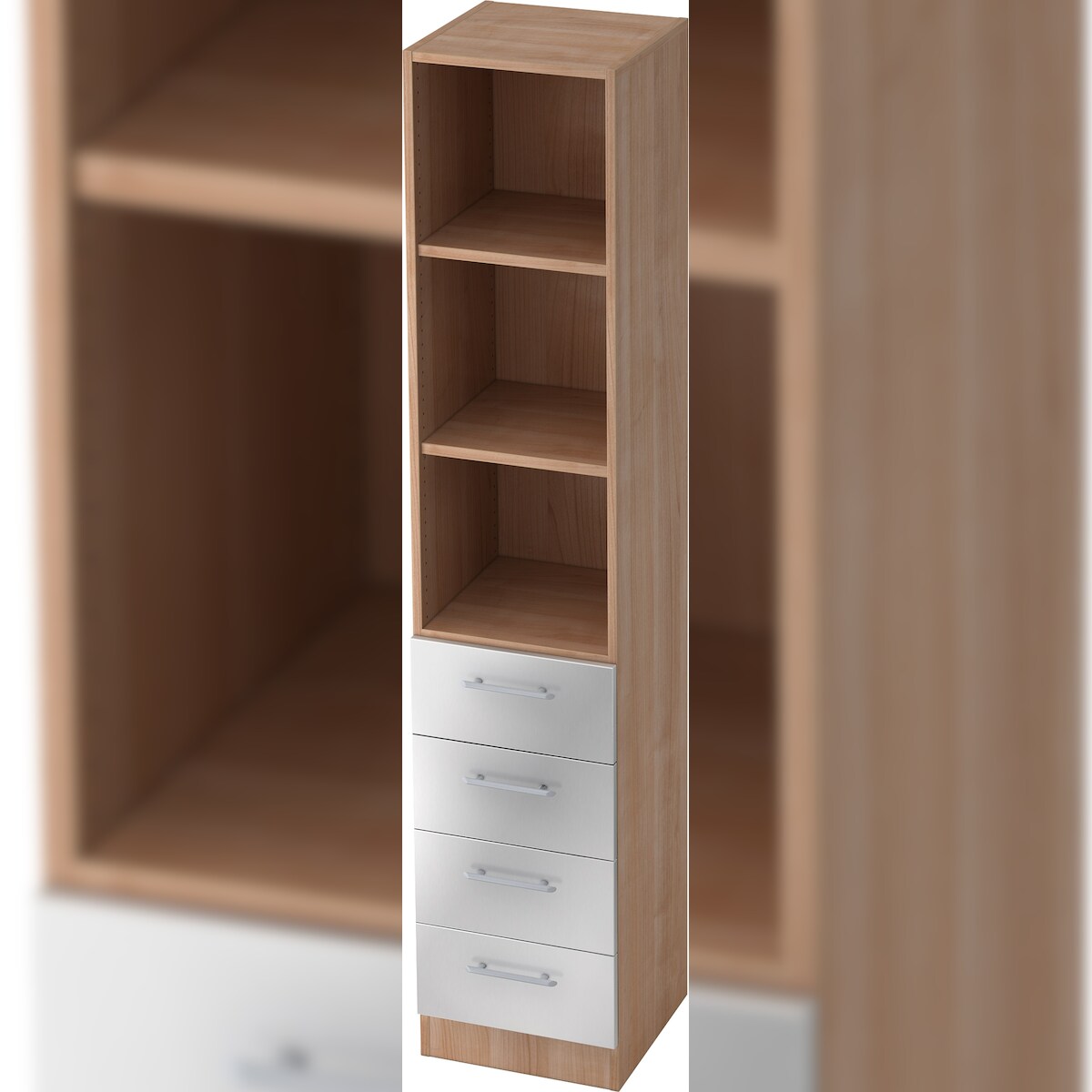 bümö office Aktenschrank Regal mit Schubladen, Büroschrank schmal aus FSC-Holz, 40cm breit in Nussbaum/Silber - Aktenregal & Schubladenschrank mit