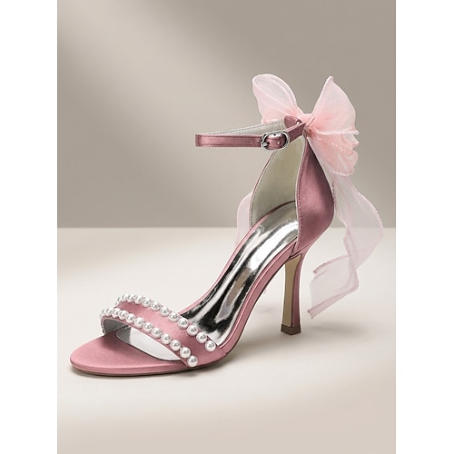 sandali da donna con tacco alto e cinturino alla caviglia in perle argentate, eleganti scarpe da sposa per matrimoni in città