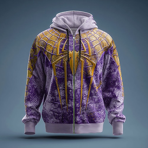 Felpa con Cappuccio Spider 3D da Uomo Punk Cool Collo a Girocollo Regalo Party Streetwear Blu Viola Coulisse Cerniera Autunno Inverno Designer