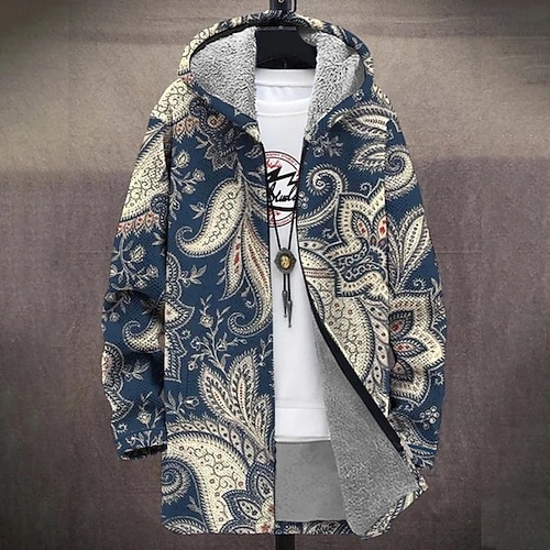 Da uomo Grafico Geometrico Cappotto Invernale Giacca in Pile Cappotto Calore Termico Confortevole Casual Abbigliamento quotidiano Cerniera Tasca Stampa 3D Autunno Inverno Con Cappuccio Manica Lunga