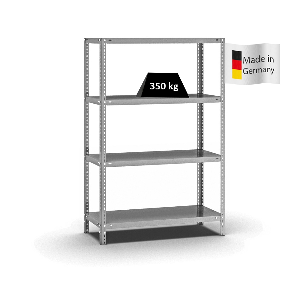 PROREGAL Fachbodenregal Schraubsystem | Grundregal | HxBxT 150x100x40cm | 4 Ebenen | Fachlast 350 kg | Beidseitig nutzbar | Verzinkt