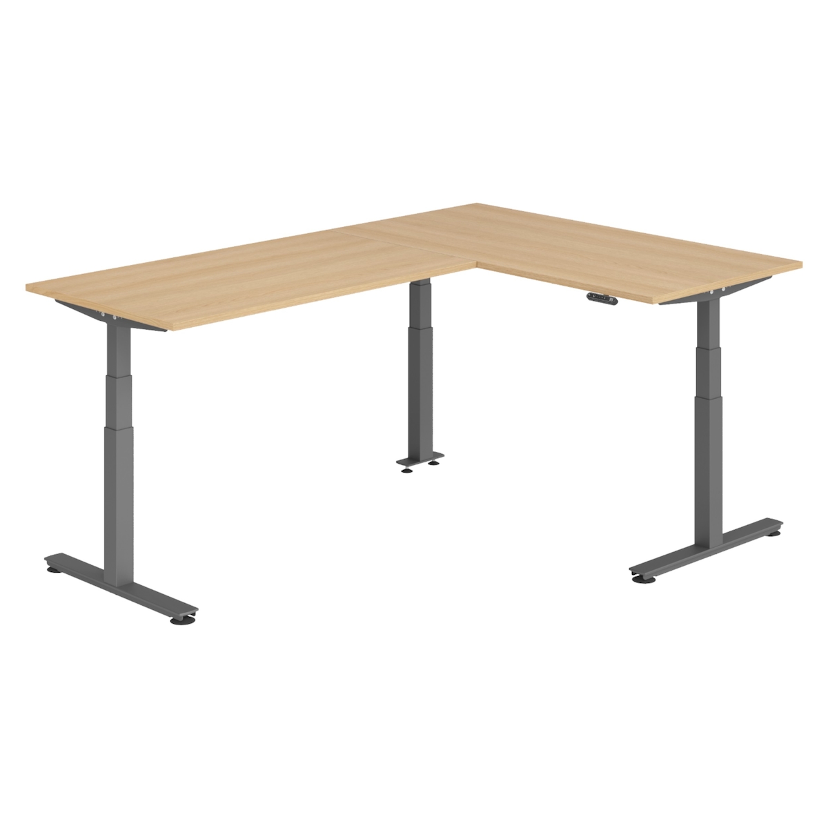 bümö Eckschreibtisch elektrisch höhenverstellbar L-Form: 160 x 240 cm in Eiche, Gestell graphit - Stehschreibtisch mit Memory-Steuerung, elektrischer